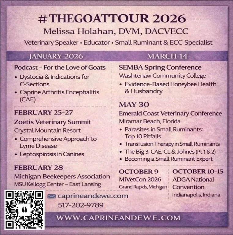 Caprine & Ewe Veterinary Consulting offers a variety of opportunities for hands on education on topics of concern for small ruminant producers of all ages.
